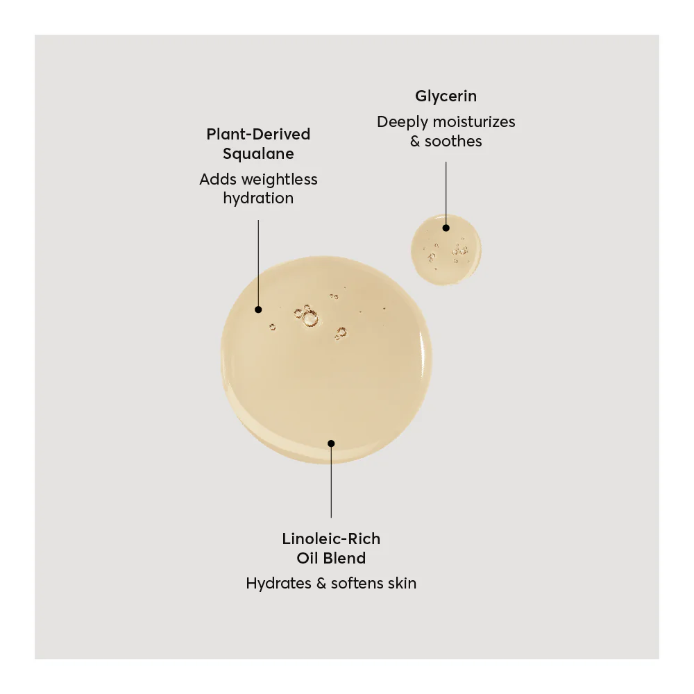 Naturium sensorial, hydrating body wash transforms from a luscious oil consistency to a gentle lather, cleansing without stripping the skin of essential moisture. Formulated with 50% glycerin, a blend of linoleic-rich oils and plant-derived squalane, this transformative body cleanser is rich in humectants that hydrate and nourish skin.