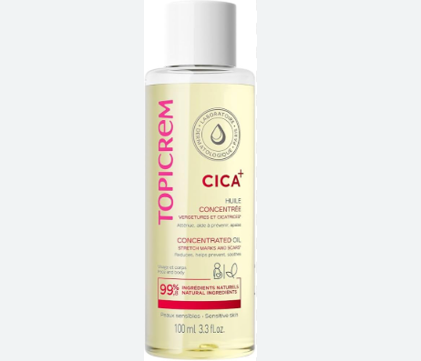The Topicrem Cica Concentrated Oil visibly reduces stretch marks and scars while preventing new ones from forming. Soothes itchiness and discomfort on the skin with the help of camelina oil, which is rich in purified omega-3.
